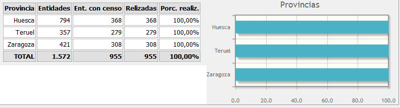 Como puede verse, la fase 1 ya está completada y la fase 2 en marcha, restando únicamente alrededor de 100 censos de la provincia de Huesca para su finalización.
